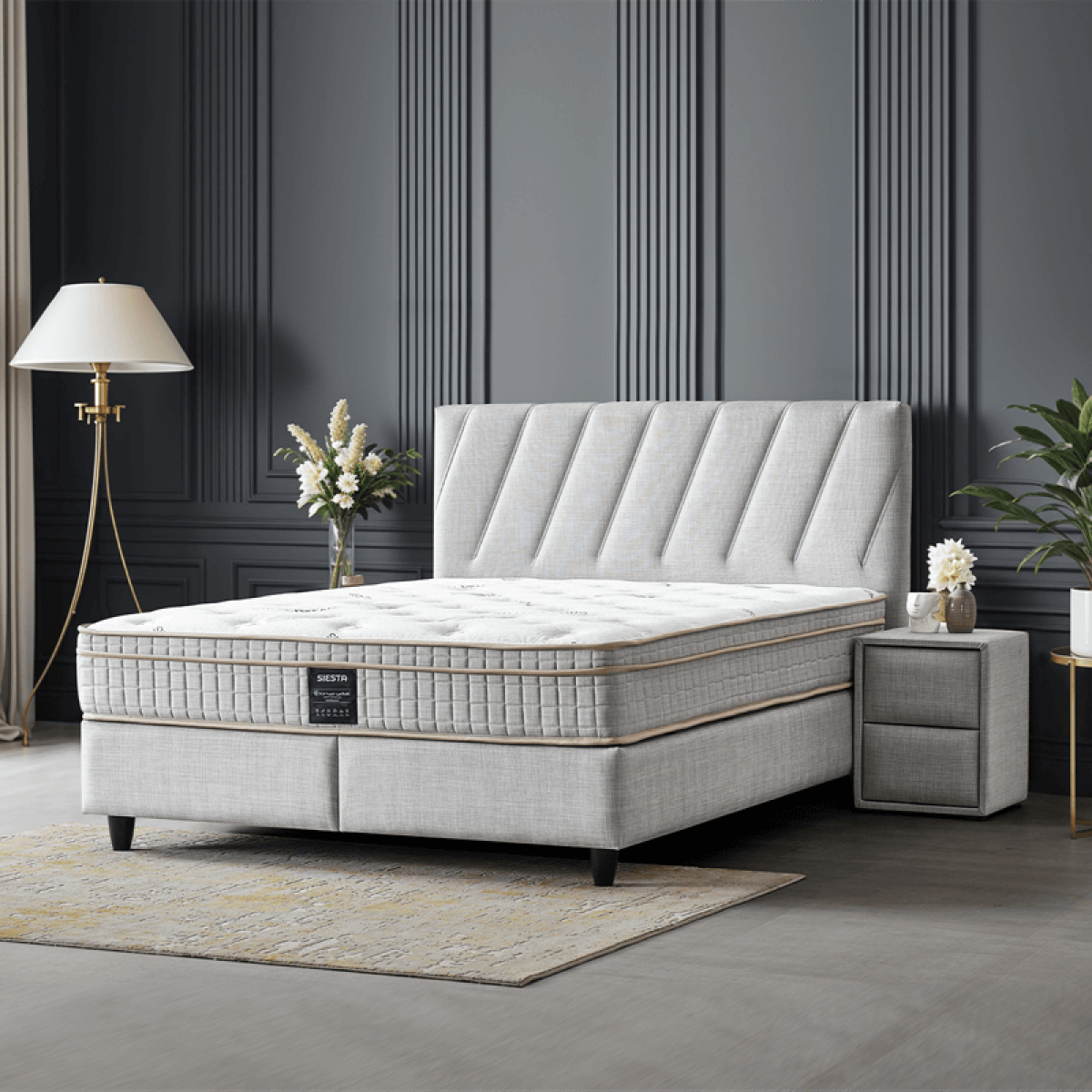 Тапицирана спалня с матрак SIESTA 160 x 200 - светлосив 21