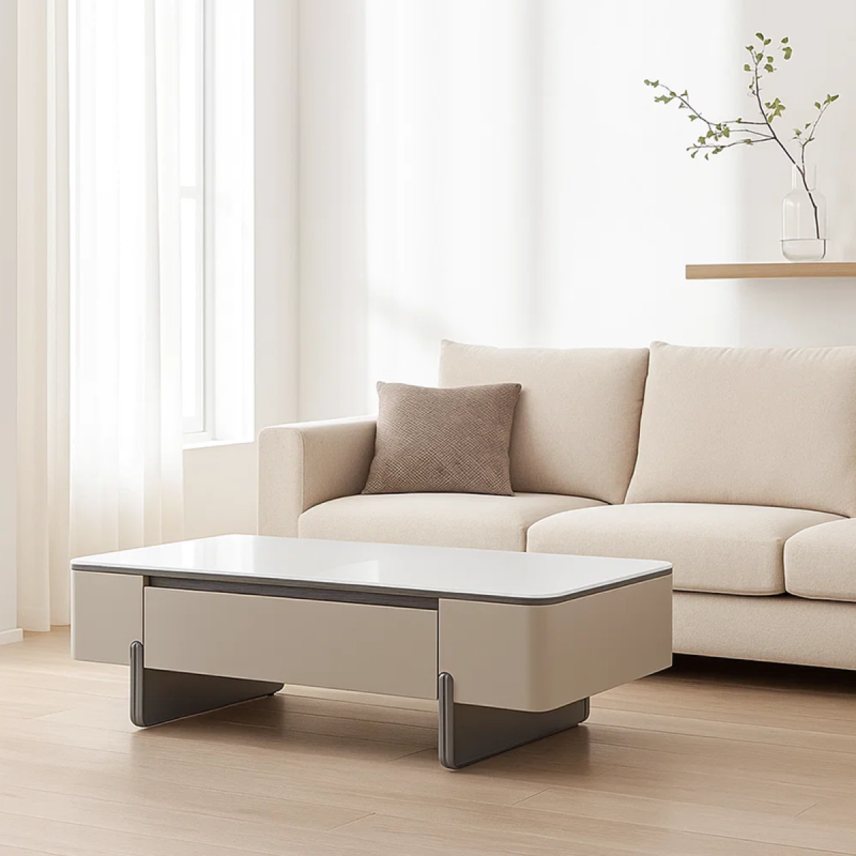 Холна маса FLINT - бял-капучино