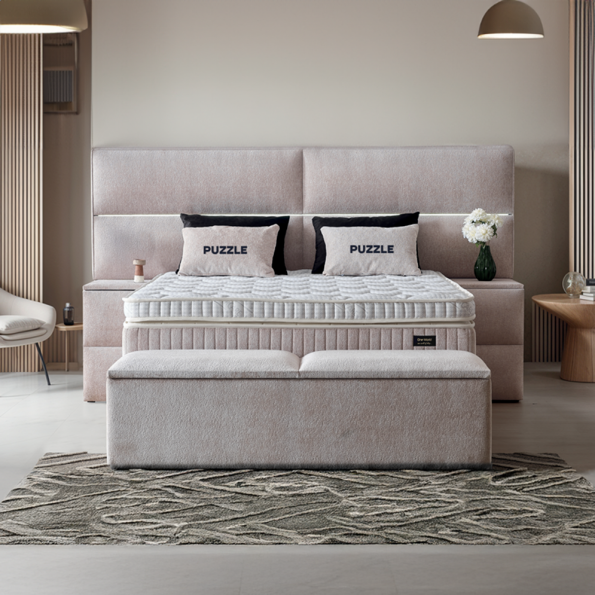 Тапицирана спалня с матрак PUZZLE 180 х 200 - бежов 03