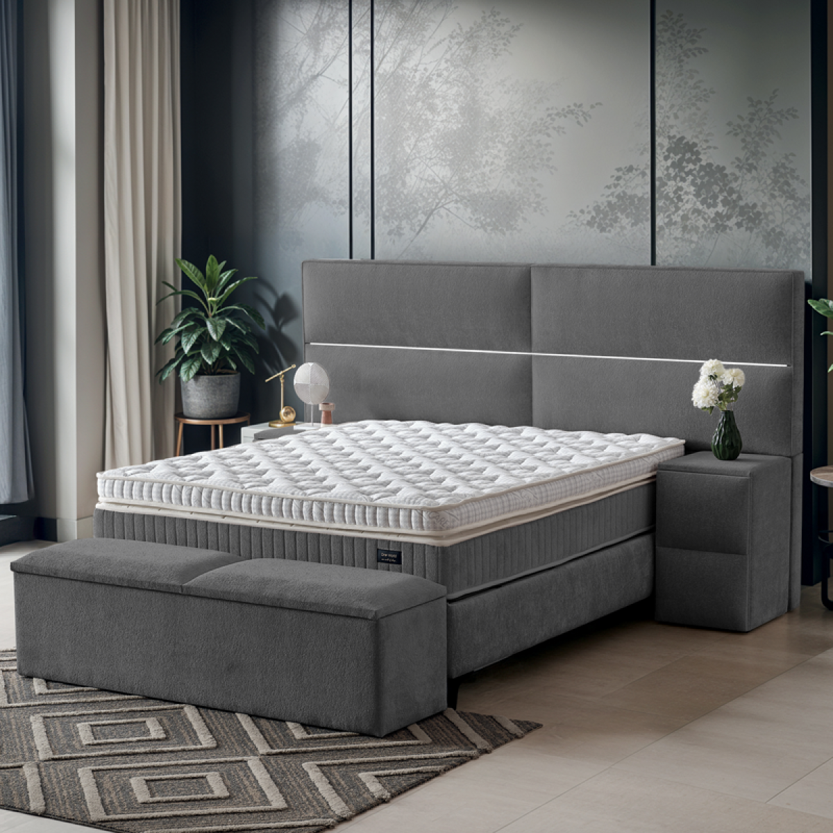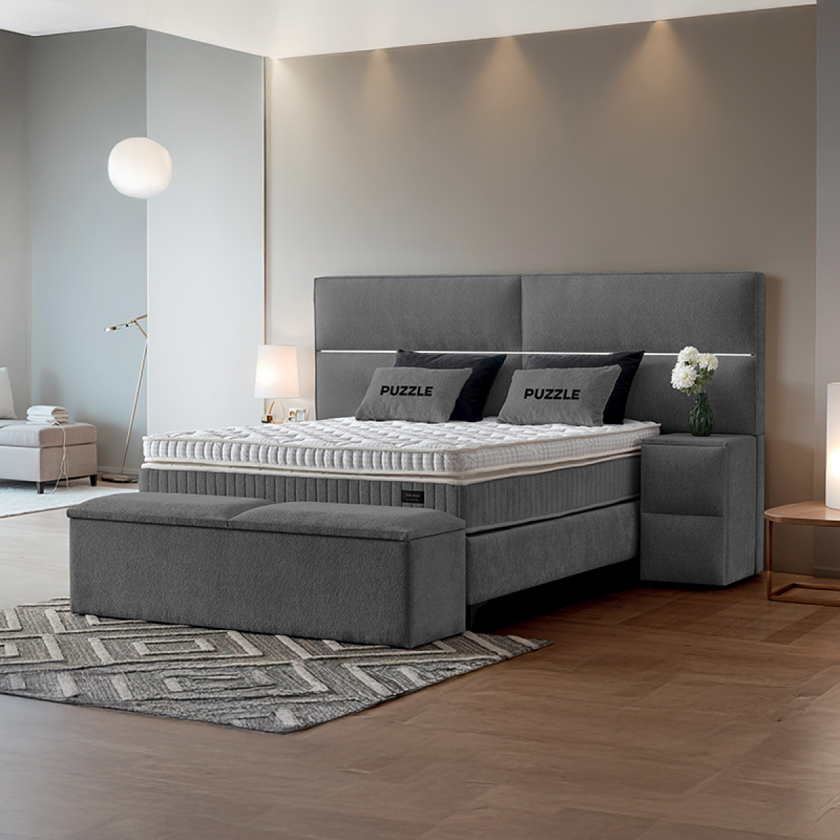 Тапицирана спалня с матрак PUZZLE 160 x 200 - сив 16