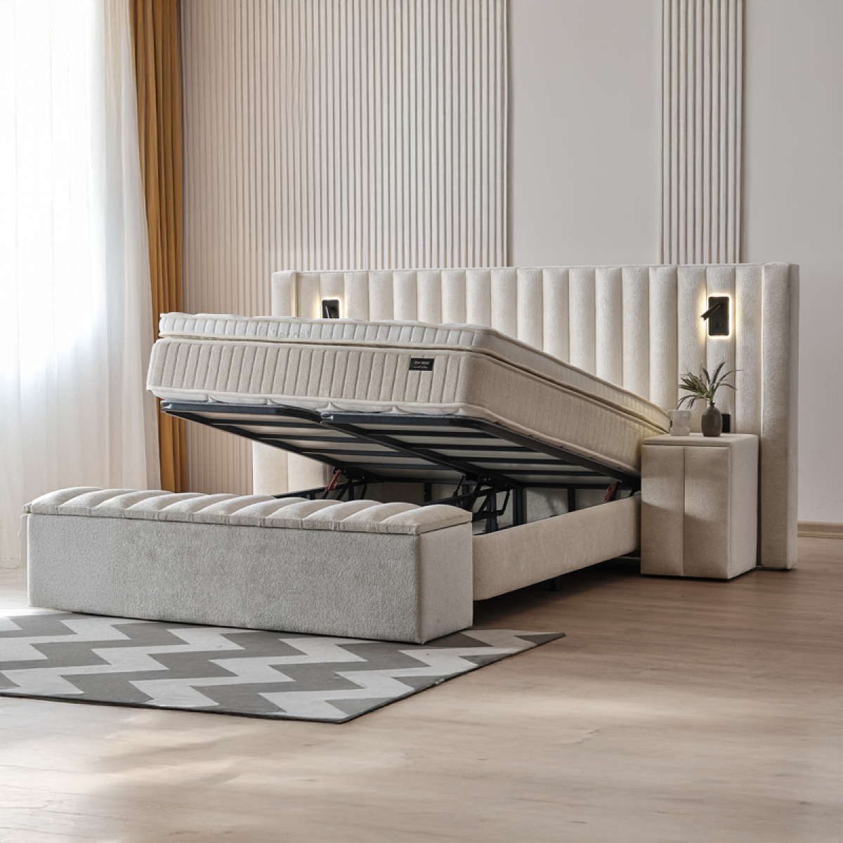 Тапицирана спалня с матрак FLORIDA 180 х 200 - крем 01