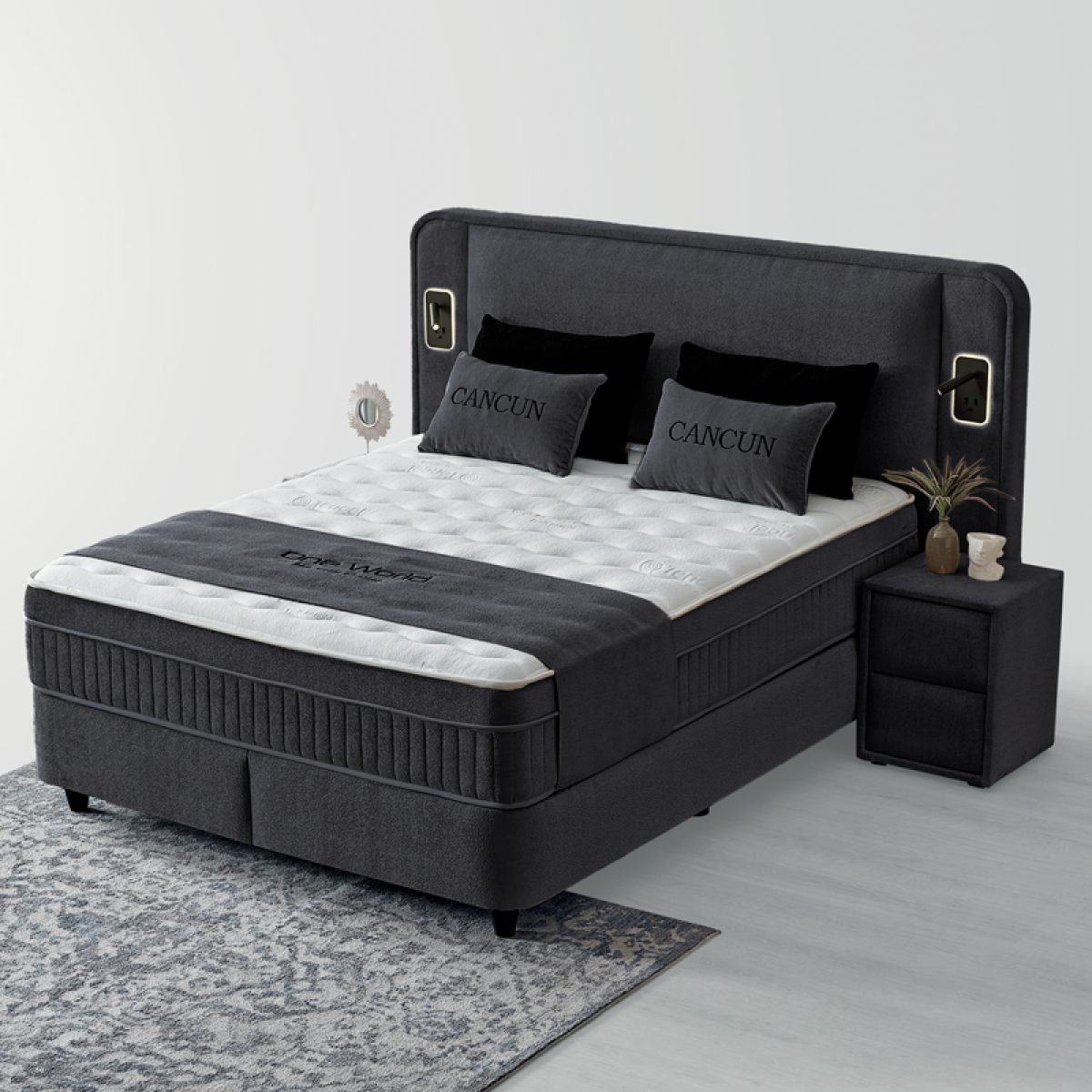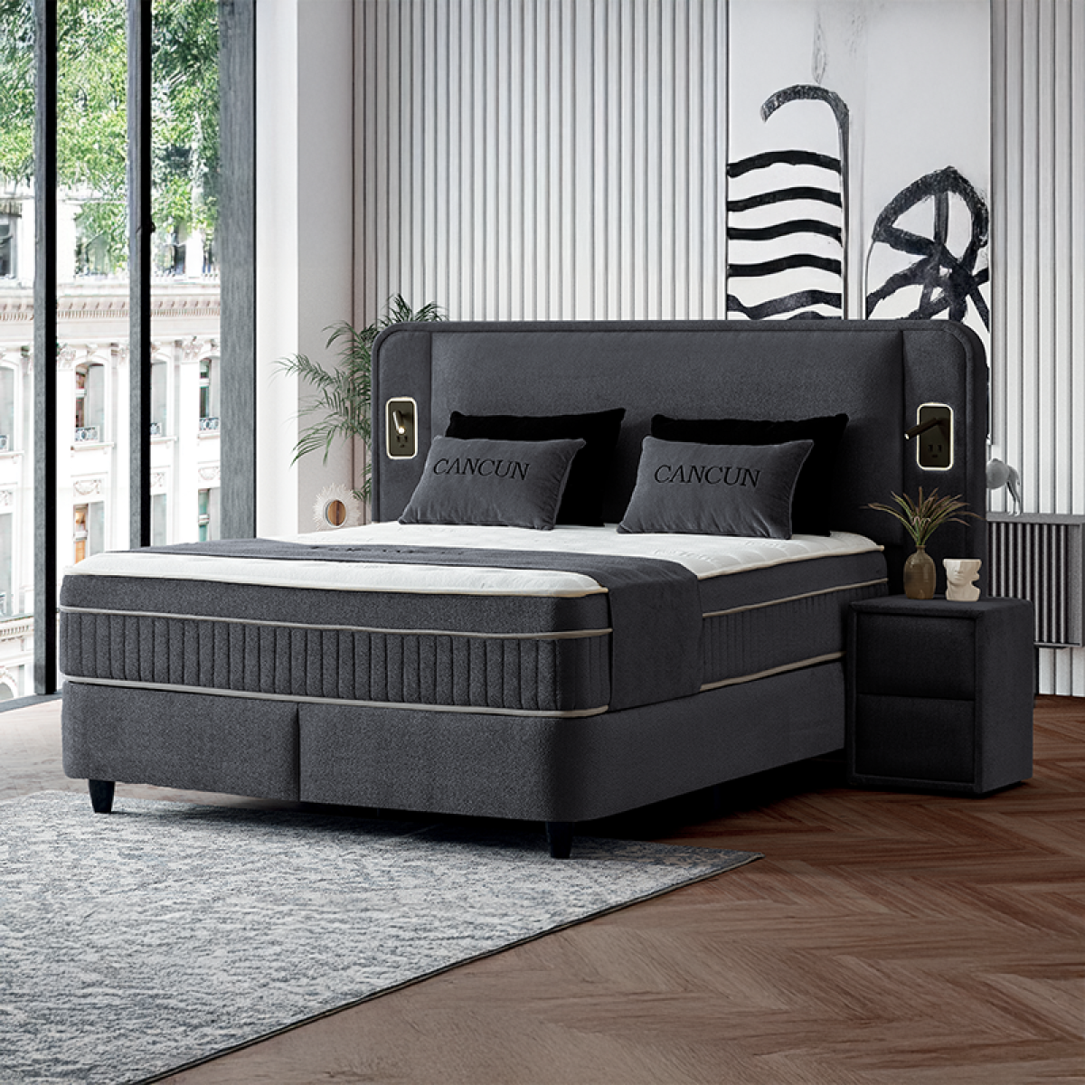 Тапицирана спалня с матрак CANCUN 180 x 200 - сив 18