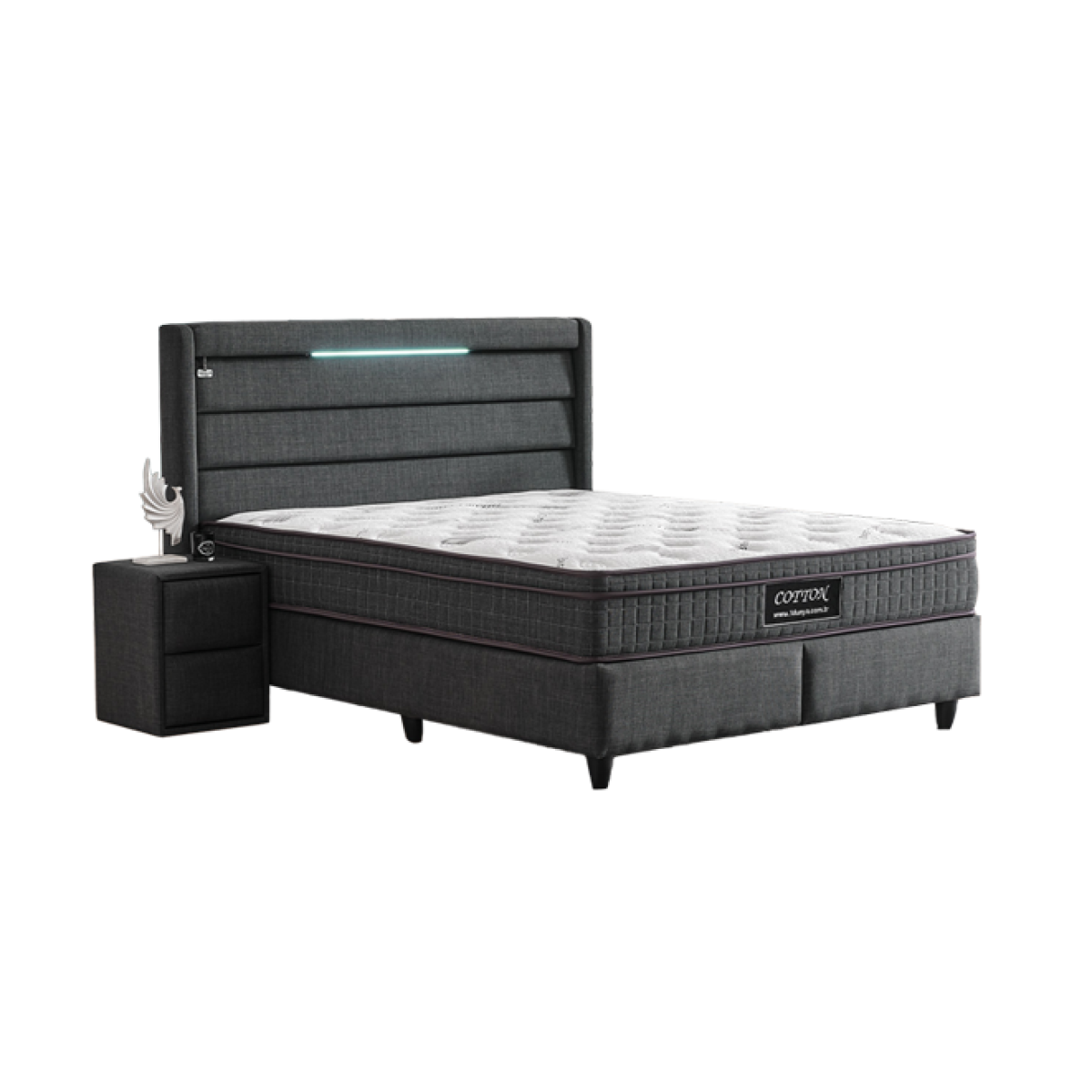 Тапицирана спалня с матрак COTTON 180 x 200 - графит 501